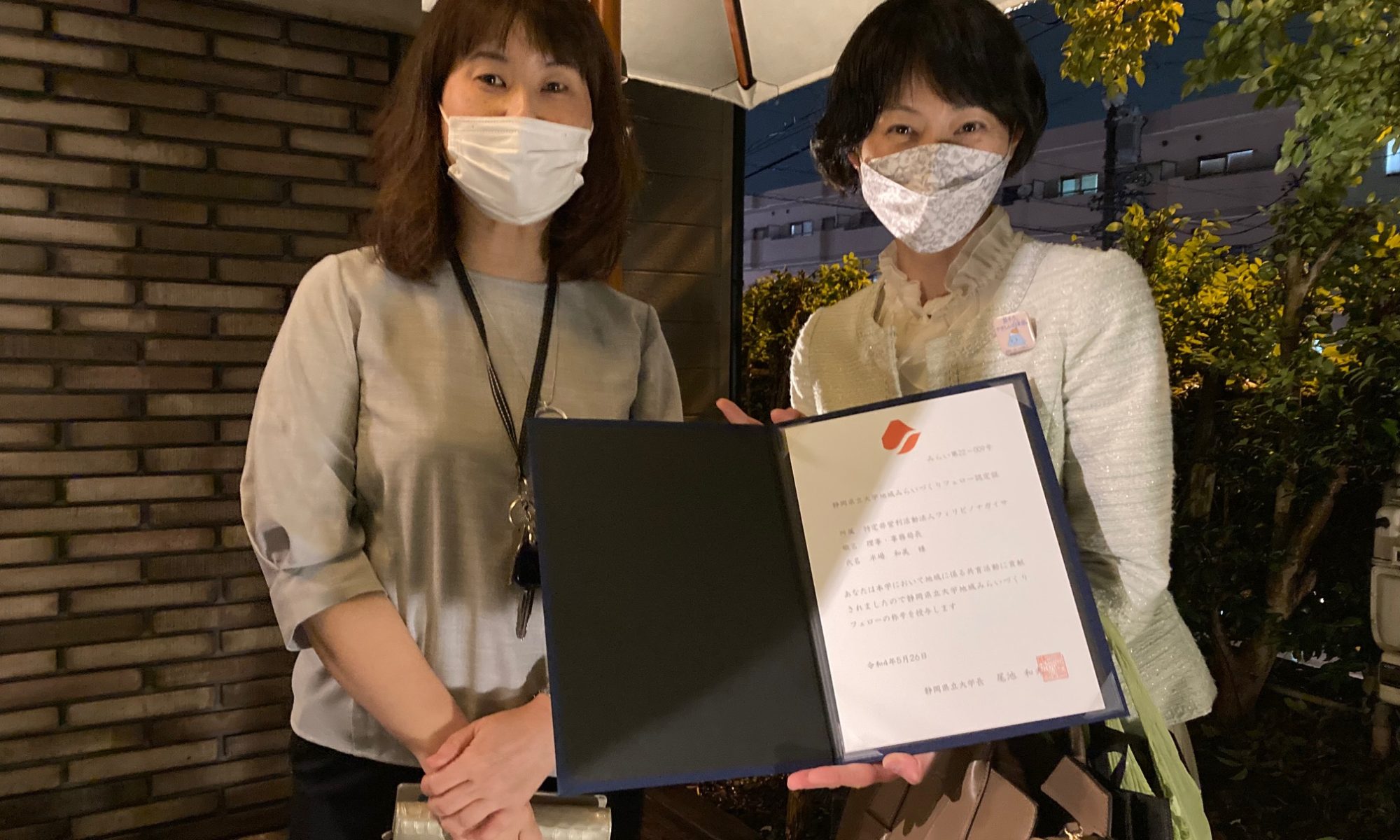 静岡県立大学 2022「地域みらいづくりフェロー」認定証の授与式へ参りました