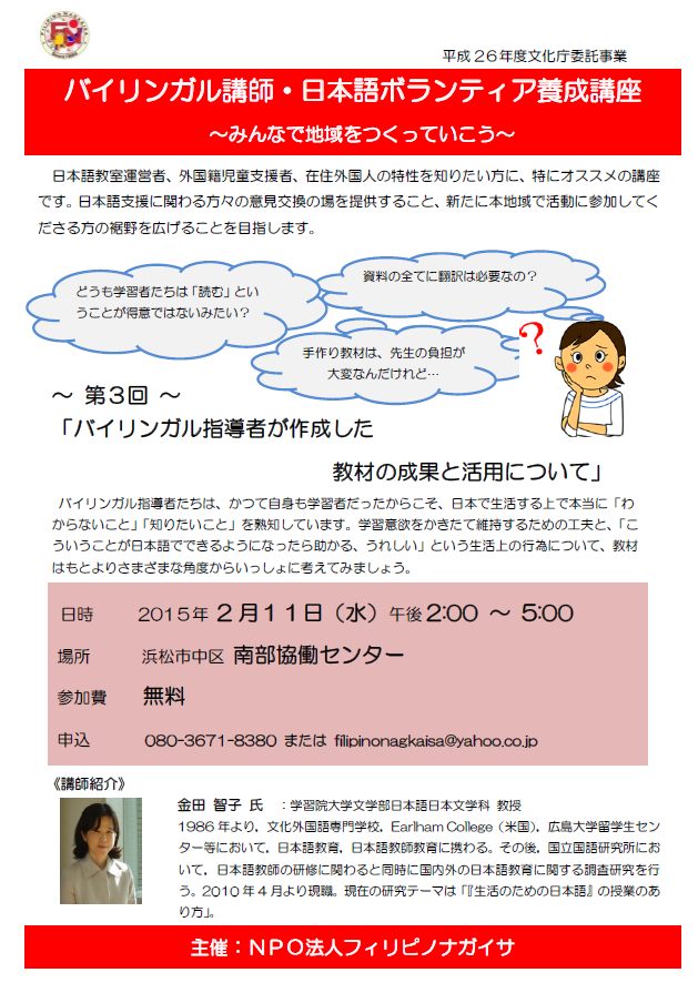 今年度も公益財団法人浜松国際交流協会(HICE)より委託を受けて、「ハロハロ教室」が始まります。