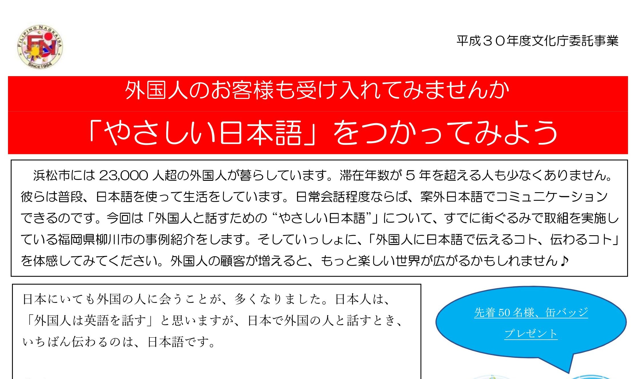これは毎年タガログ語通訳を入れて、当法人が独自に行っているものです。